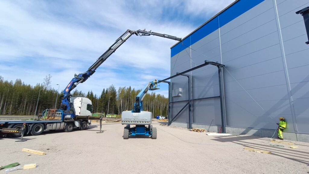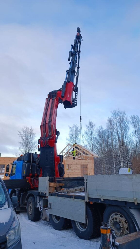 Kyllä riittää. Käytössämme on järeät 48tm, 85tm ja 150tm kuormausnosturit, joilla onnistuvat vaativatkin konttien ja parakkien nostot sekä elementtien asennukset haastavissa olosuhteissa.